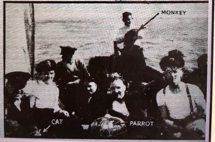 The whole crew had managed to scramble into four lifeboats and set sail for the Irish coast, taking with them the four ships pets, a monkey, canary, cat and a parrot. Cadet Robert Taylor had enough time to take his camera to record the events for posterity.