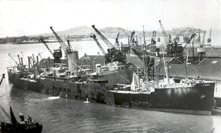 The Brisbane Star finally sailed from Malta on December 7th 1942 as part of Convoy ME11 to South Africa. Once again the crews were subjected to air attack on their way to the Suez Canal, Brisbane Star suffering further shrapnel damage to the stern area, but nothing serious. On arrivalin Cape Town the ship’s cook on the first night tried to negotiate the narrow plank between the ship and wharf, fell into the harbour and drowned, not a good omen.