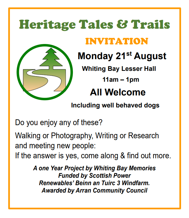 - Holidays in Arran – Tale from 1930’s and onwards to living memories.