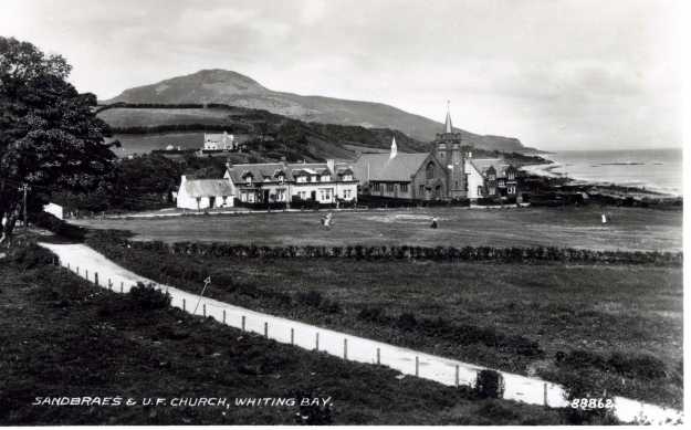 Just beyond the Sand Pulpit was the site of the Tea Rooms in the early 1950’s they were run by Gladys Miller followed by Ian Robertson. The tennis courts remained for some years but were not maintained. The Royal Hotel and The Whiting Bay Hotel both had busy tennis courts. This is now a Stables still with the connected Robertson family.