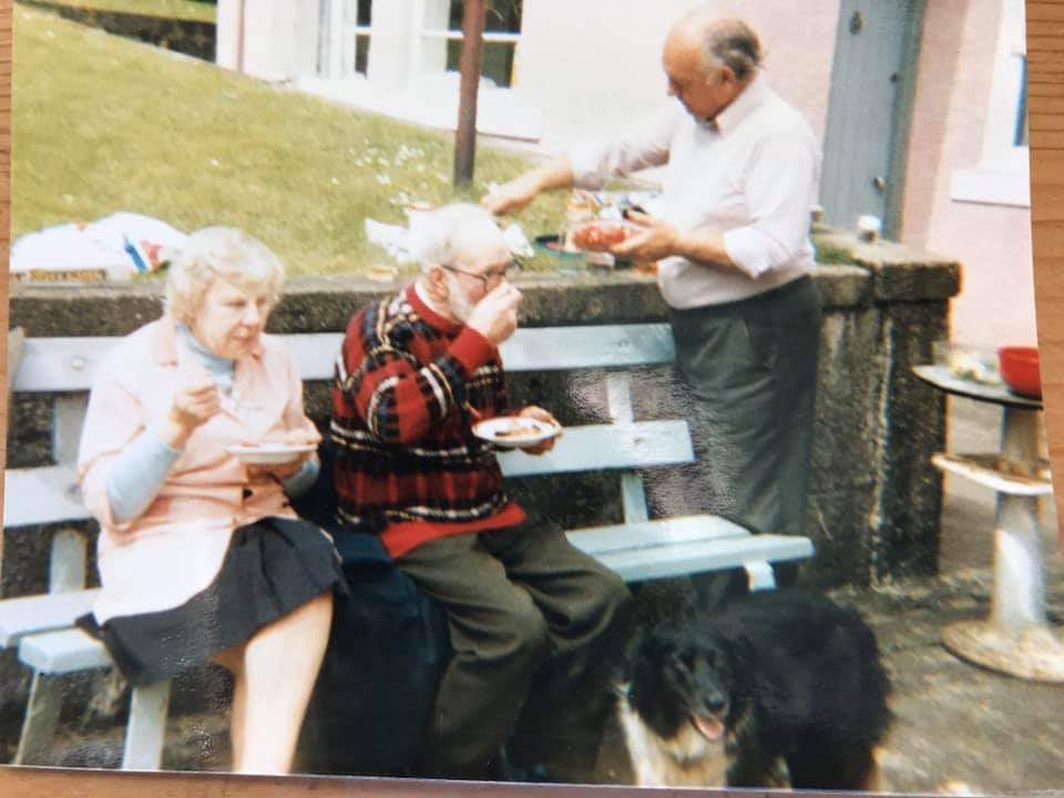 Irene ‘s first visit to Arran was with her husband Bill and very good friend and senior foreman boss Joe, and his wife Nora Lenehan. They were on a camping holiday together and found themselves in Ardrossan, saw a sign for the ferry, and came over.