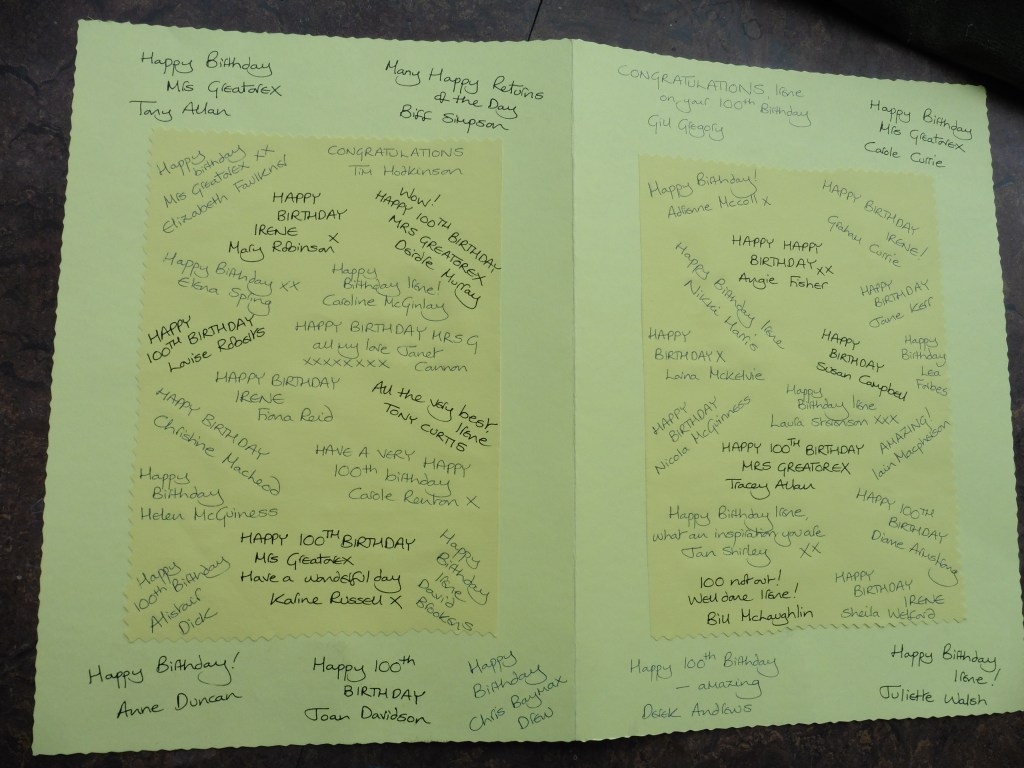 Sadly Irene passed away peacefully just a few months after her 100th birthday. But we are pleased she got to celebrate it and to know just how much she was appreciated.