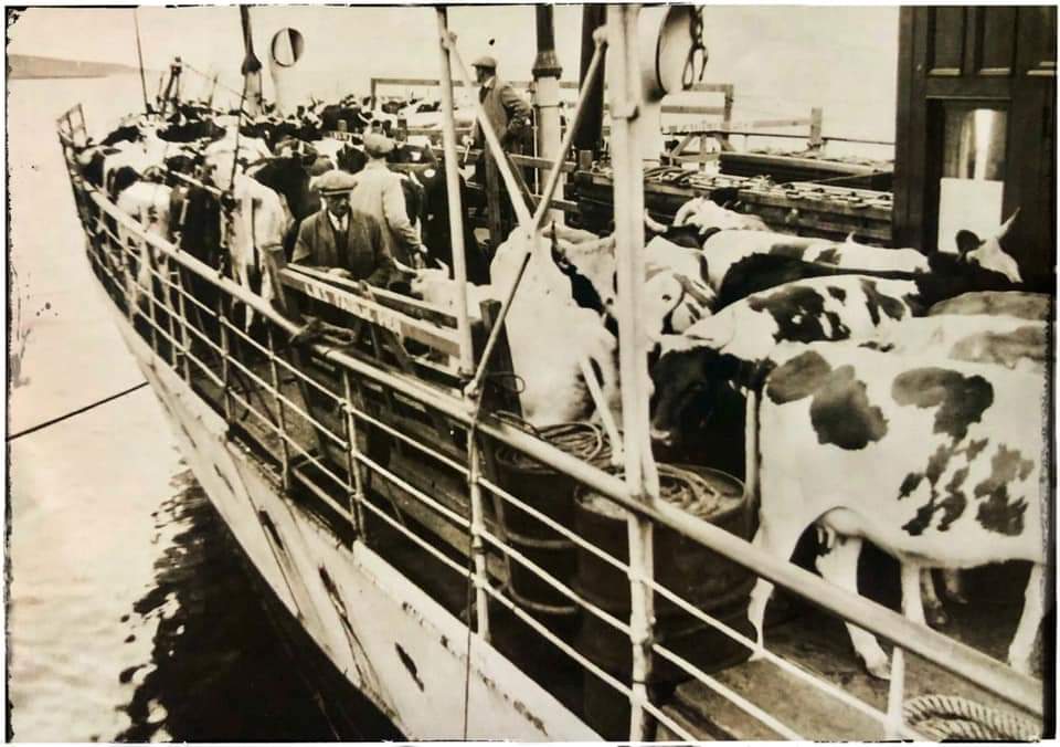 Up until the mid-fifties, before the advent of car ferries, cattle were walked down the piers, up short wooden gangways and with hurdles put in behind them, crossed the Clyde on the open deck.