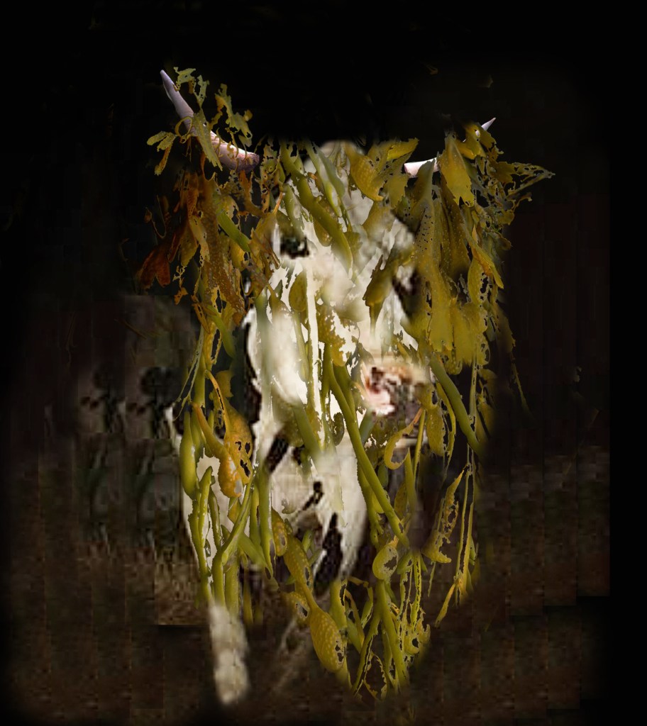 There on the lawn was a very forlorn, tired, shivering cow with long strands of seaweed hanging from its wide horns.
