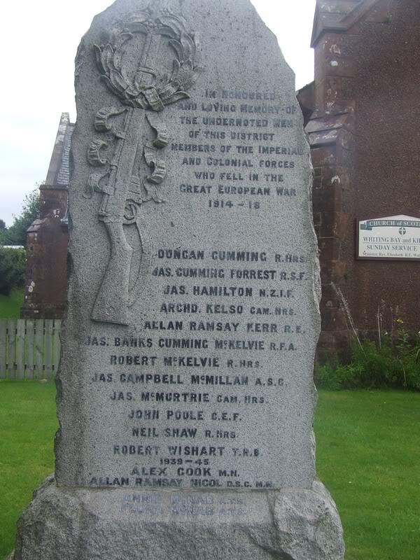 On the war memorial is the name of James Cumming Forrest. He was killed at the Battle of the Somme, 1916. His brother was in the same battle, but survived.