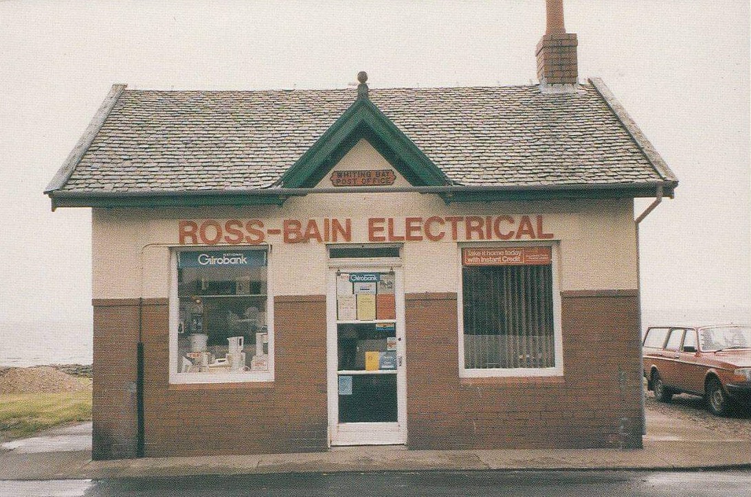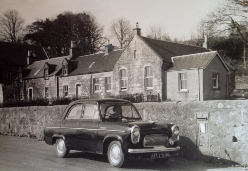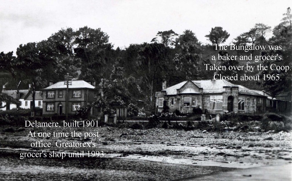 Post Office, original owner Matthew Kerr of Springhill, followed by H. S. Cook, many people remember Hamish from summer plays as well as the shop, then briefly Ross Bain Electricals including the Post Office, and an electrical showroom which was housed in the building to the right which was formerly Hamish’s store and originally Matthew Kerr’s boathouse, today this is the chemist shop. Now John Simmonds owns the Post Ofice known as The Pillar Box, the village is lucky that we have our essential Post Office and shop.