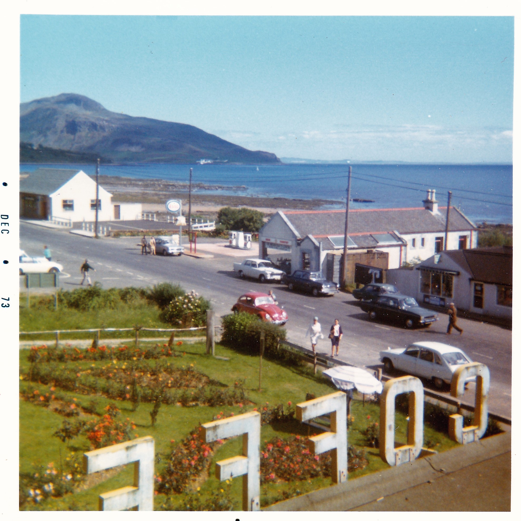The garage became a DIY shop, with a rear section home to Mary, then Julie Nelson as hairdressers. Later the central section became a mini supermarket, which was closely followed by County Carpets, today 50 years on it is in the safe hands of Tim Wilkinson. The DIY store which was in the right hand section, was owned by Bill Jones. This then became Arran Art Galley with Nick Giles.