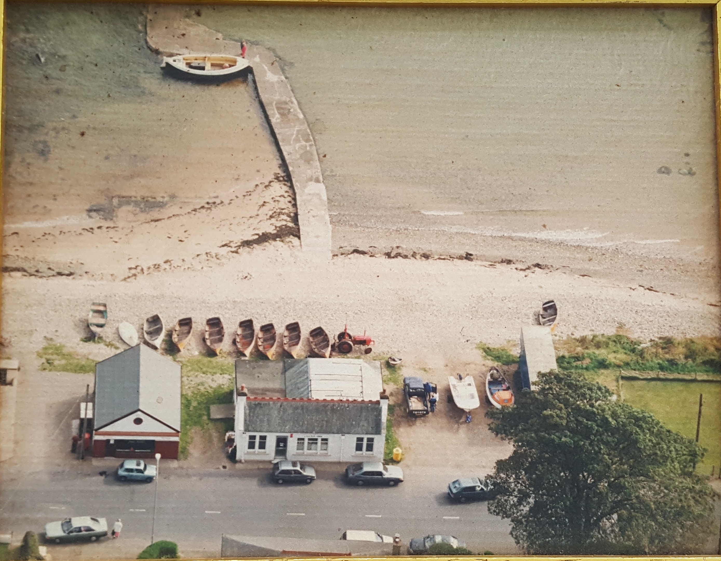 2. Assuming the tide level is suitable, from the slipway head south along the beach, walk along the beach to a spot in front of Bay Tree Cottage, a wonderfully designed extension on what used to be Donald Currie (Cuddy) the shoe-maker’s little shop.